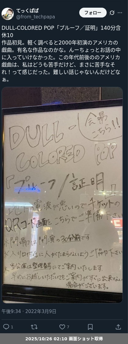 【観劇レポート】DULL-COLORED POP「プルーフ/証明」