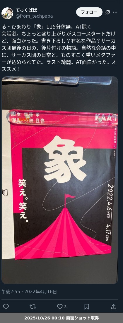 【ネタバレ分離】昨日観た芝居、 る・ひまわり「象」の観劇レポートです。