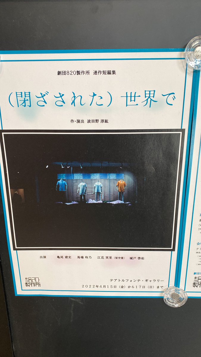 【ネタバレ分離】昨日観た芝居、 劇団820製作所「(閉ざされた)世界で」の観劇レポートです。