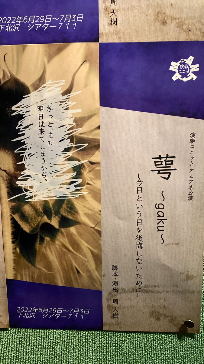 【ネタバレ分離】昨日観た芝居、 演劇ユニットアムアネ「萼~gaku~」の観劇レポートです。