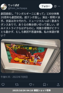 | 観劇日時 | 2022年7月8日 19時00分〜 |