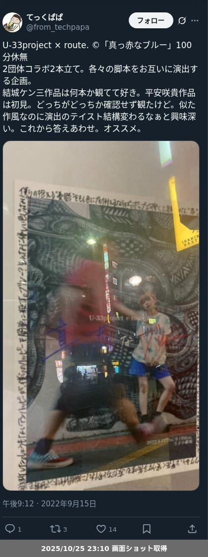 【観劇レポート】U-33project×route.©️「真っ赤なブルー」