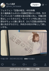 【ネタバレ分離】昨日観た芝居、 フェルフェン「記憶の転生」の観劇レポートです。