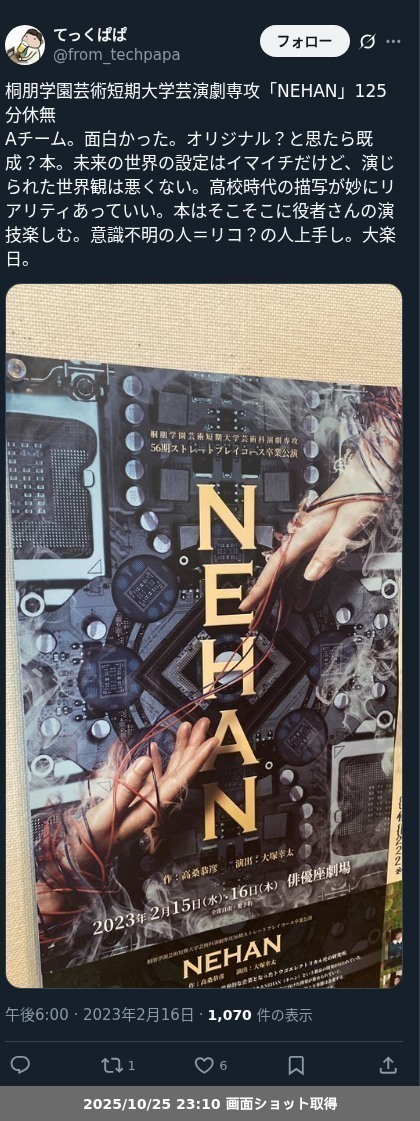 • 【ネタバレ分離】昨日観た芝居、 桐朋学園芸術短期大学演劇専攻「NEHAN」の観劇レポートです。