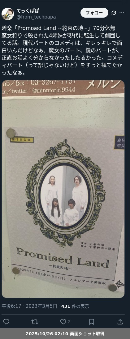 【ネタバレ分離】碧楽「Promised Land〜約束の地〜」の観劇レポートです。