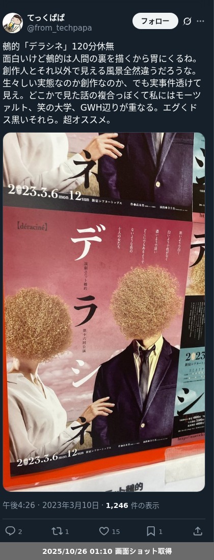 | 観劇日時 | 2023年03月10日 14時00分〜 |
