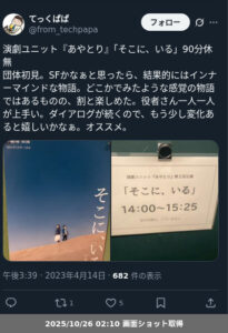 【ネタバレ分離】 演劇ユニット『あやとり』「そこに、いる」の観劇レポートです。