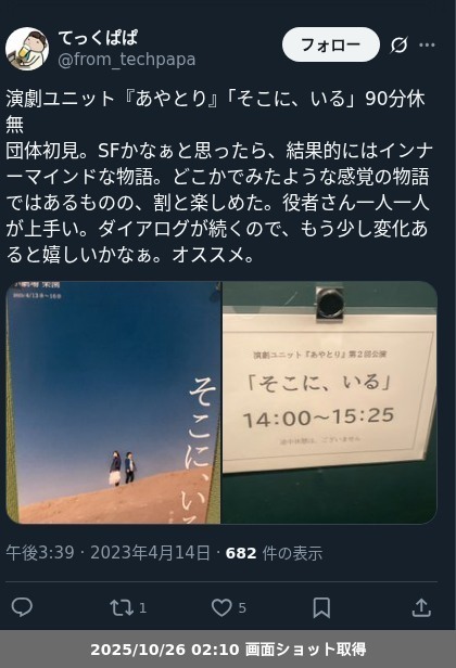 | 観劇日時 | 2023年04月14日 14時00分〜 |
