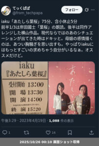 【ネタバレ分離】 iaku「あたしら葉桜」の観劇レポートです。