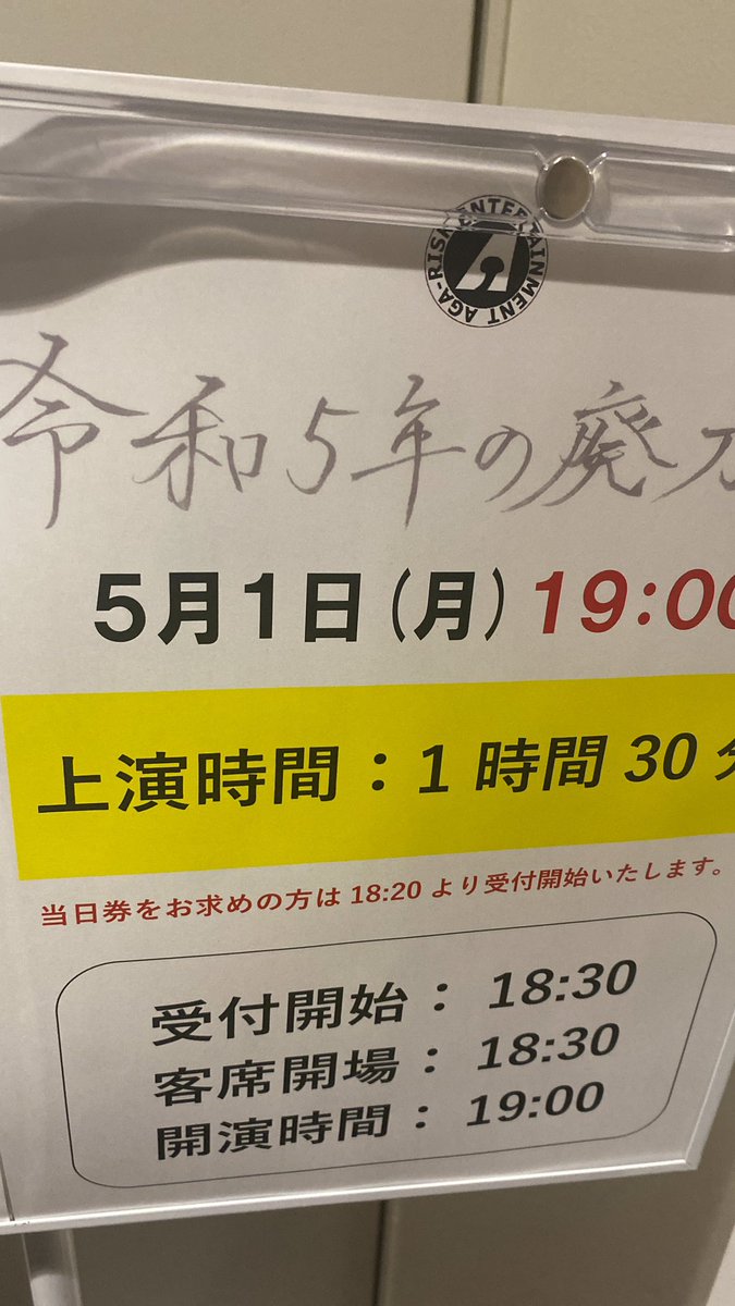 | 観劇日時 | 2023年05月01日 19時00分〜 |
