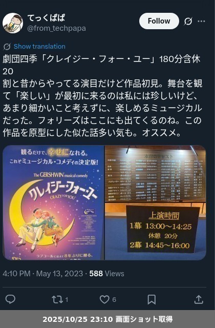 - 2025年05月18日 劇団四季「バック・トゥ・ザ・フューチャー」(2025東京)