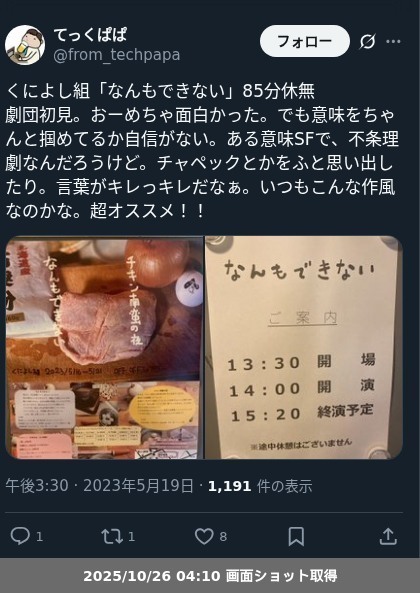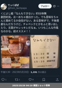 【ネタバレ分離】 くによし組「なんもできない」の観劇レポートです。