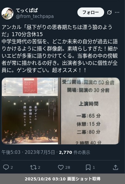 アンカル「昼下がりの思春期たちは漂う狼のようだ」170分含休15