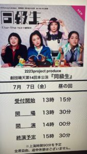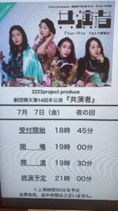 【ネタバレ分離】 2223project 劇団晴天「共演者/同級生」の観劇レポートです。