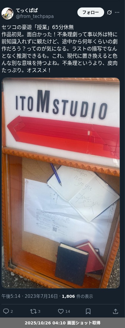 | 観劇日時 | 2023年07月16日 16時00分〜 |