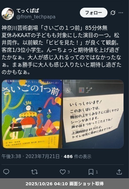 【ネタバレ分離】 KAAT神奈川芸術劇場「さいごの1つ前」の観劇レポートです。