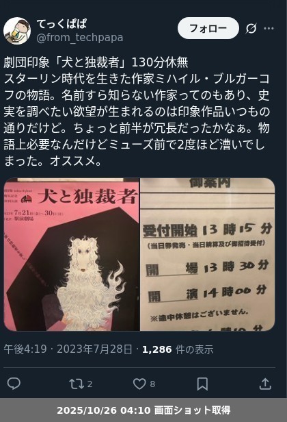 | 観劇日時 | 2023年7月28日 14時00分〜 |