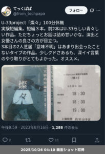 【ネタバレ分離】 U-33project「燦々」の観劇レポートです。