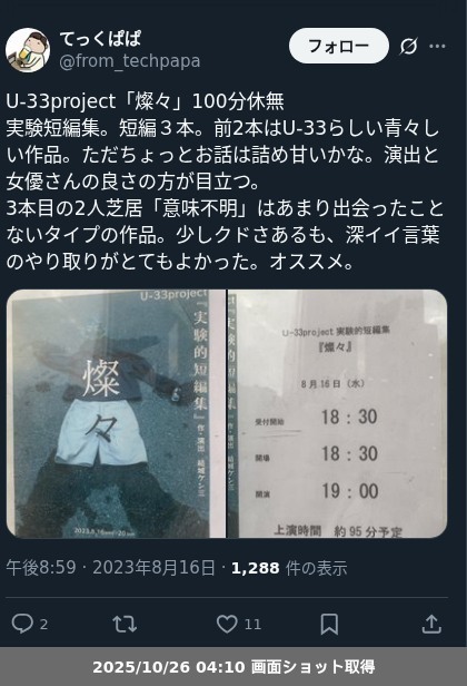 | 観劇日時 | 2023年08月16日 19時00分〜 |