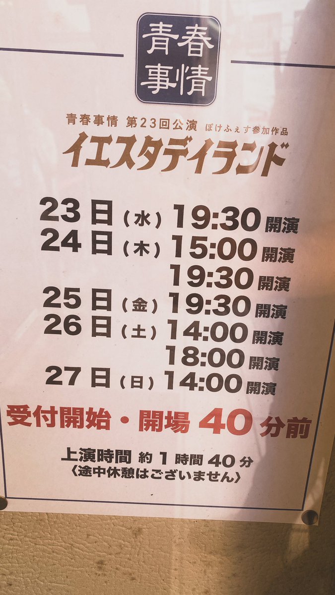 【ネタバレ分離】 青春事情「イエスタデイランド」の観劇レポートです。
