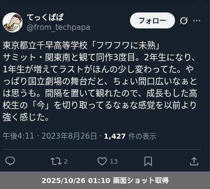 - 2025年01月13日 第60回関東高等学校演劇研究大会 ・・・「#高校演劇」のつづき