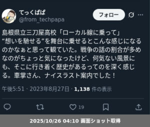 5.島根県立三刀屋高等学校「ローカル線に乗って」