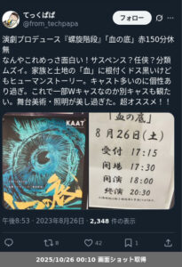【ネタバレ分離】 演劇プロデュース『螺旋階段』「血の底」の観劇レポートです。