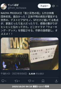 【ネタバレ分離】NAOYA PRODUCE「夜と灰色の街」の観劇レポートです。