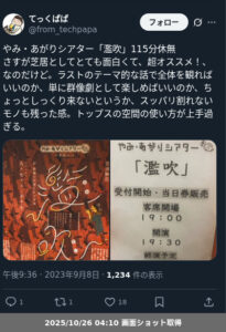 【ネタバレ分離】 やみ・あがりシアター「濫吹」の観劇レポートです。