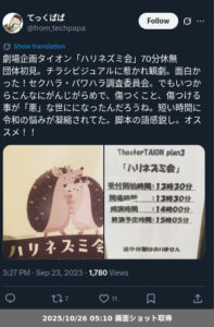 | 観劇日時 | 2023年09月23日 14時00分〜 |