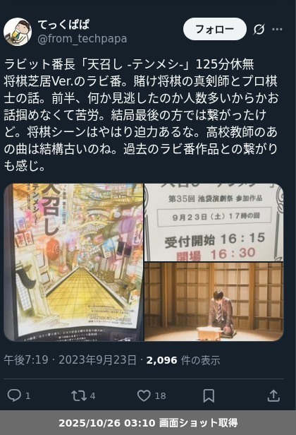 | 観劇日時 | 2023年09月23日 17時00分〜 |