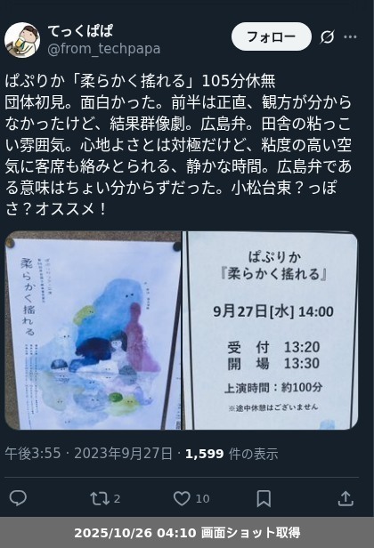 | 観劇日時 | 2023年09月27日 14時00分〜 |