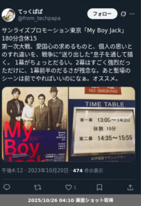 【ネタバレ分離】 サンライズプロモーション東京「My Boy Jack」の観劇レポートです。