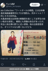 丸亀高校の過去「フートボール」の記録。・・・サッカーボールが女子の体育の授業で使われ、その後何らかの理由で全てのボールが破棄した記録の後、運動会で(破棄したはずの)フートボールを、一斉競技として実施する・・・。その破棄の記録と一斉競技の写真とが、辛うじて学校の記録として残っていて。いわば母校の「史実」から着想を得て書かれたのが、原作(とここでは表記する)の「フートボールの時間」。