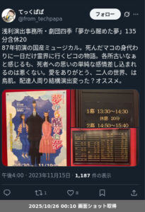 | 観劇日時 | 2023年11月15日 13時30分〜 |