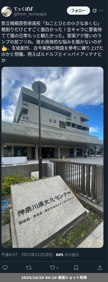 2県立相模原弥栄高校ねことひとの小さなあくむ作:矢野真優加〇11/18 10:45-