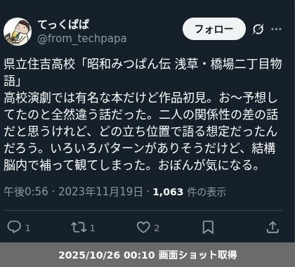 県立住吉高校「昭和みつぱん伝 浅草・橋場二丁目物語」