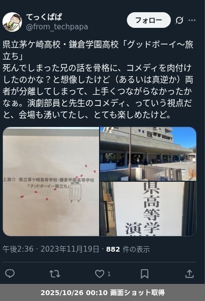 11県立茅ケ崎高校・鎌倉学園高校グッドボーイ~旅立ち作:たじまかつひろと演劇部〇◎11/19 13:30-