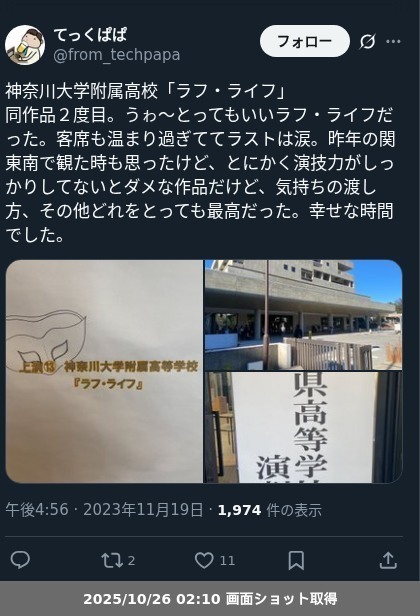 13神奈川大学附属高校ラフ・ライフ作:新堀浩司、潤色:目崎剛11/19 15:50-