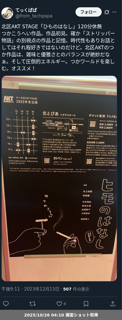 【観劇レポート】★☆北区AKT STAGE 「ヒモのはなし」