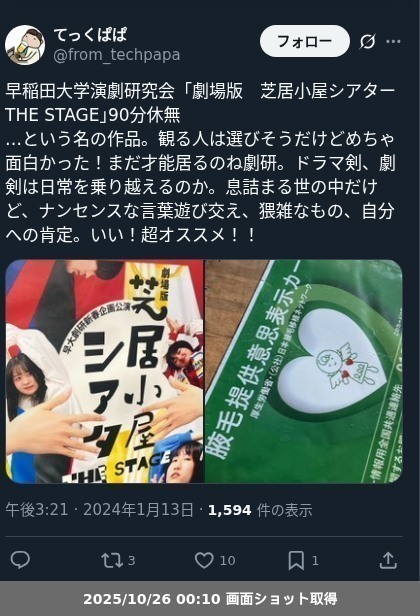 【観劇メモ】早稲田大学演劇研究会 「劇場版 芝居小屋シアター THE STAGE」