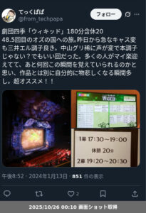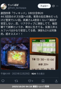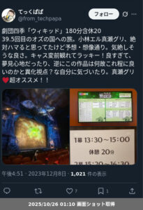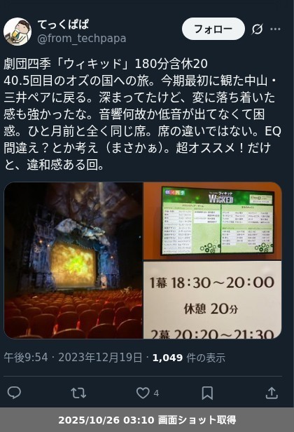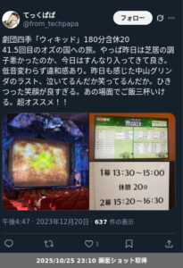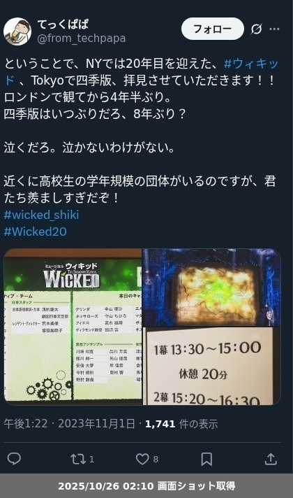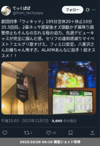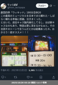 Wicked 開幕直前スペース with くまがいじゃる氏 (2023年10月11日)