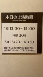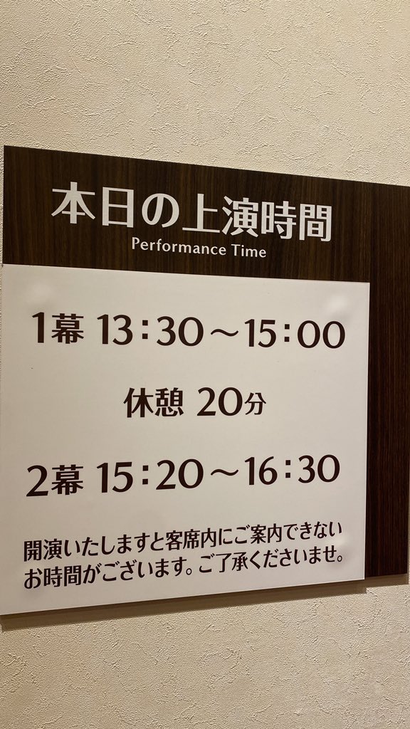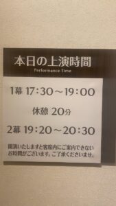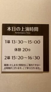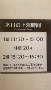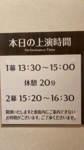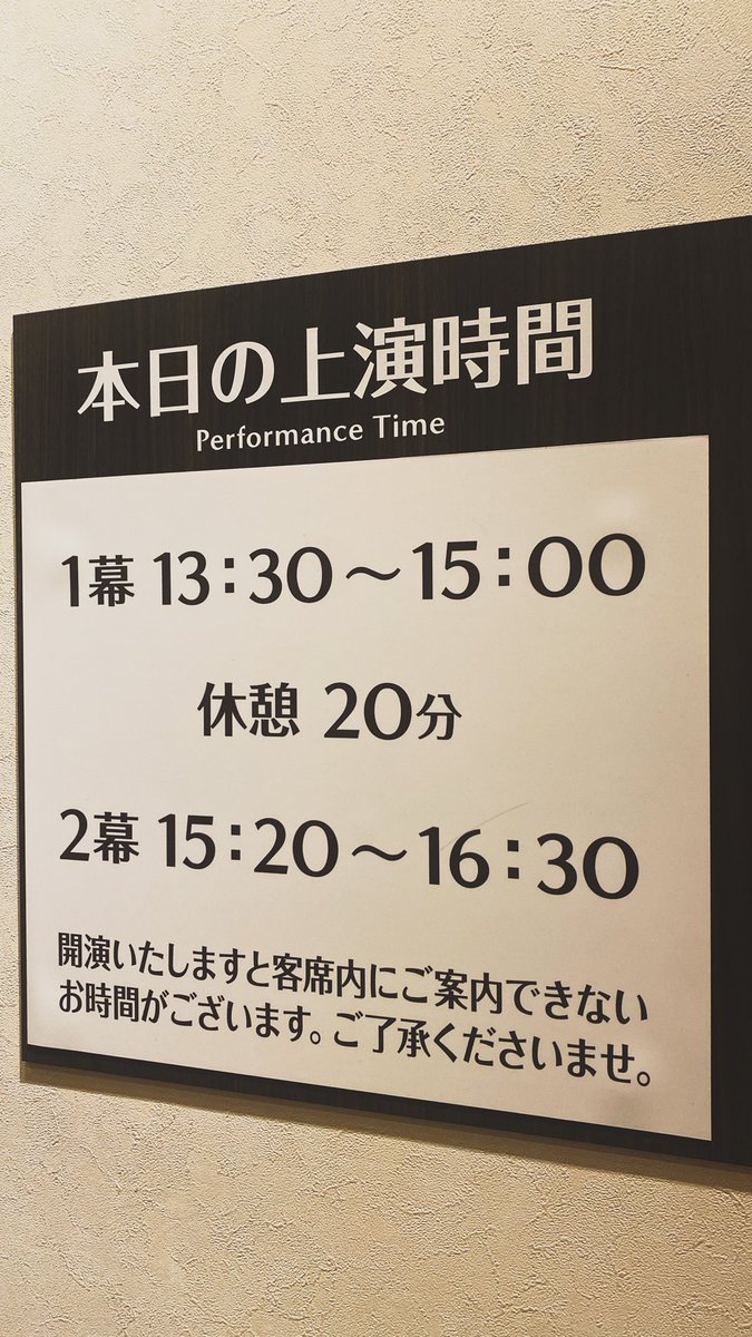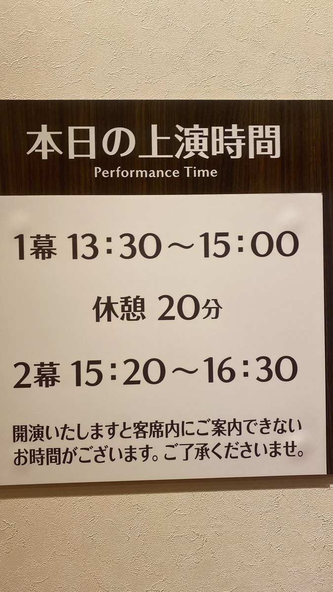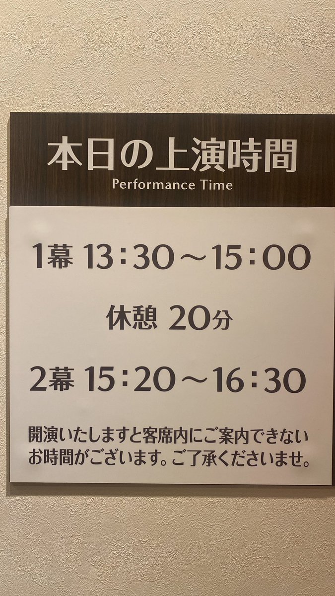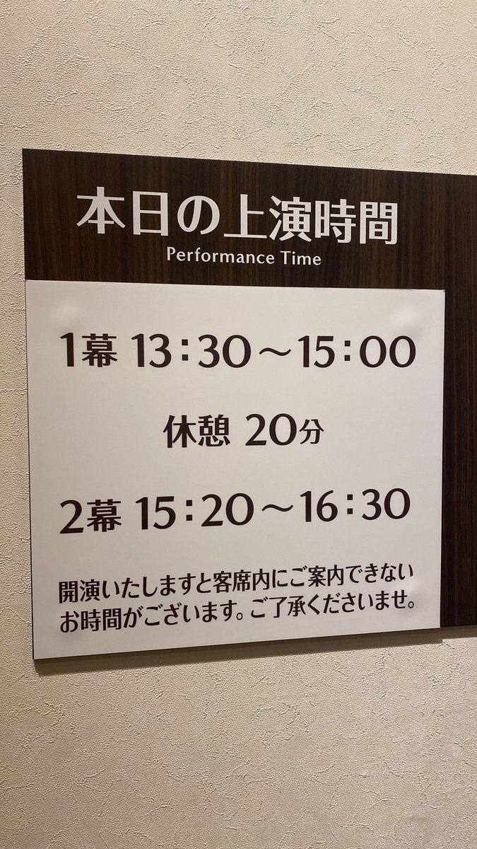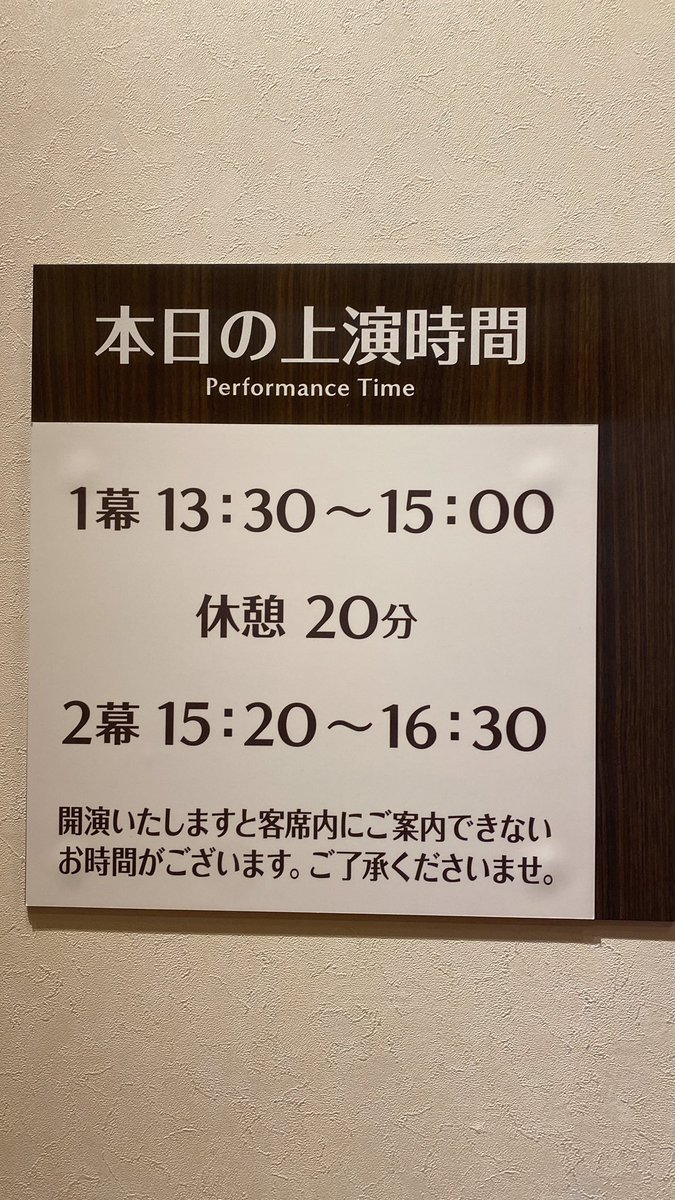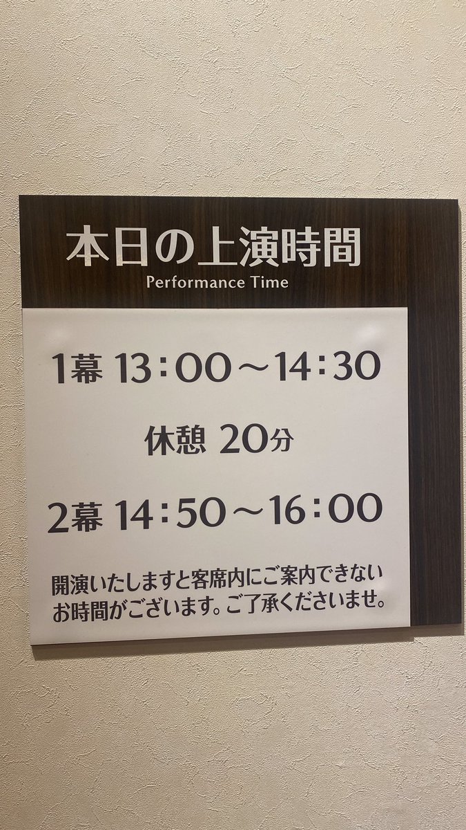 サイドA1の席。同じ席(あるいは上下対象の席)を何回か予約しているのだけれどとても観やすい。四季の会の予約日、熾烈な戦いだったけれど、この席だけ毎回空いていたの何でだろう。詳細書きたいけれど身バレも怖いで避けておく。