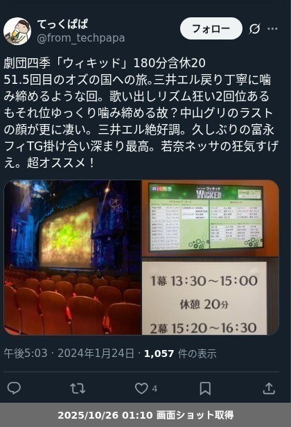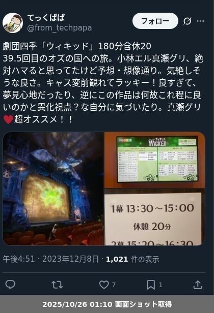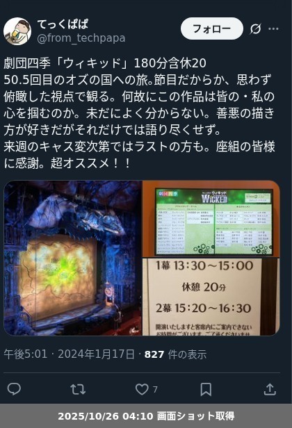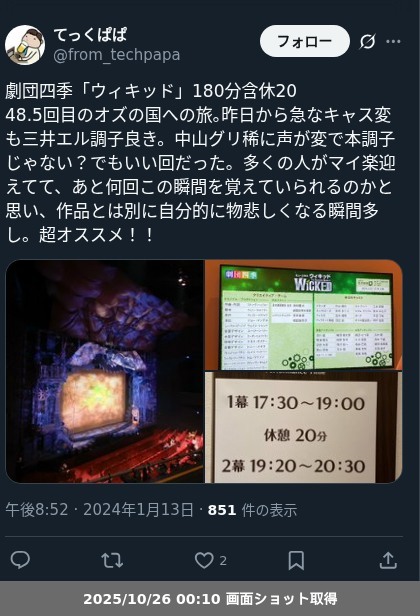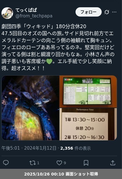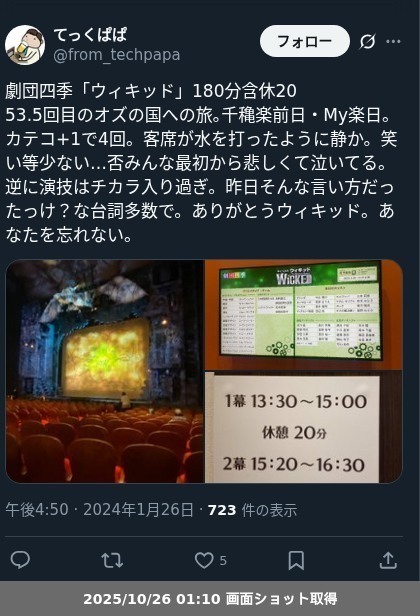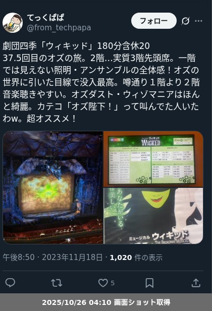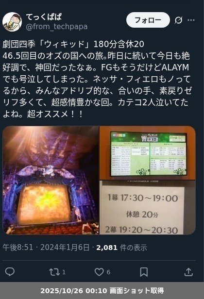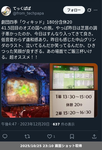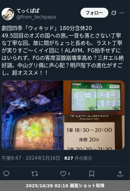 - 2025年07月05日 劇団四季「ウィキッド」(2024-25年大阪公演)