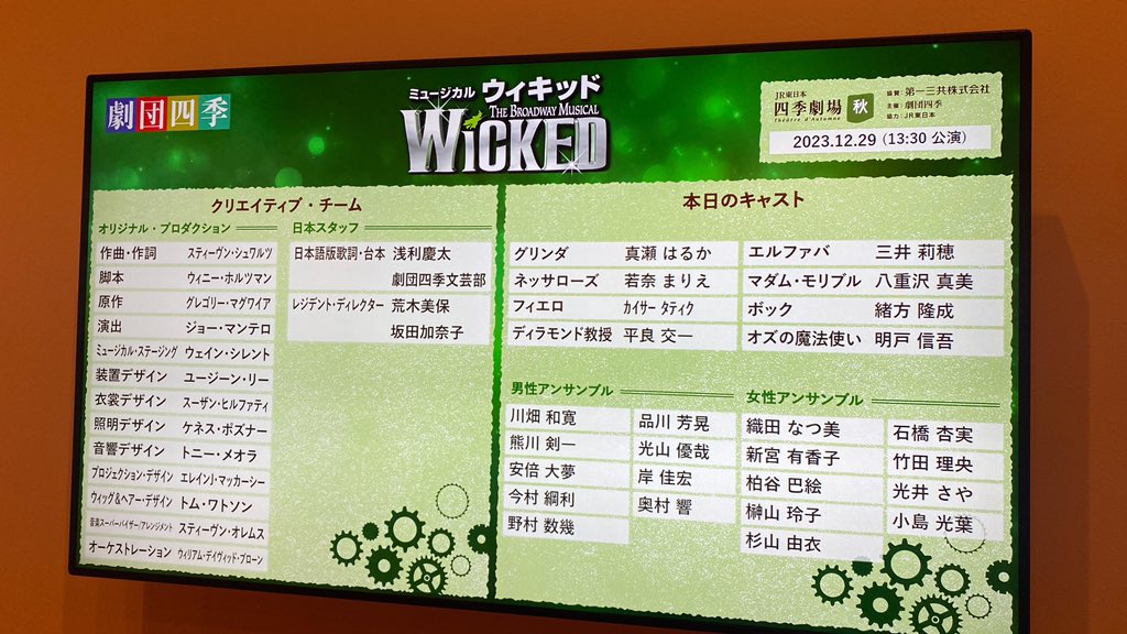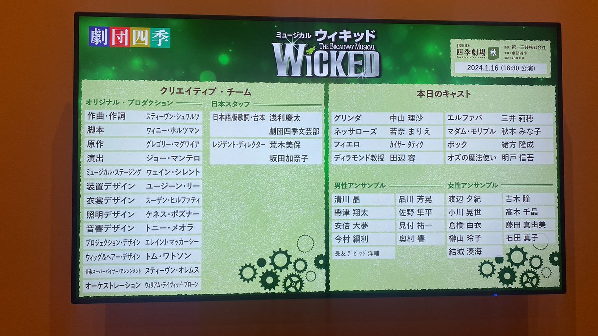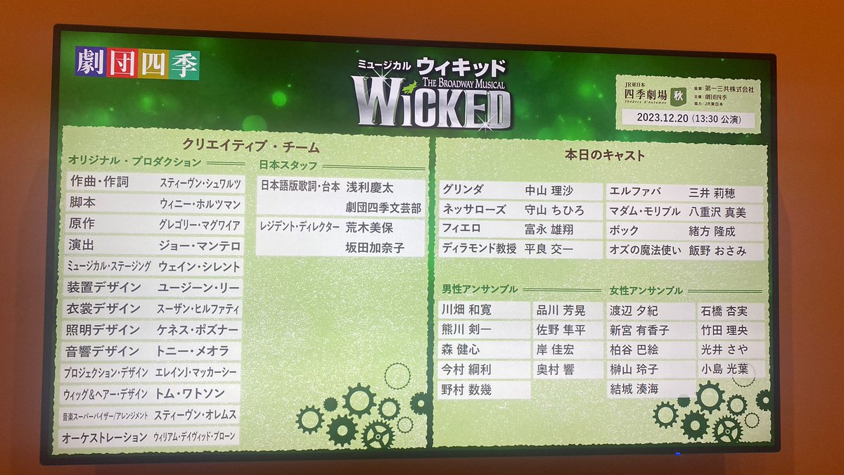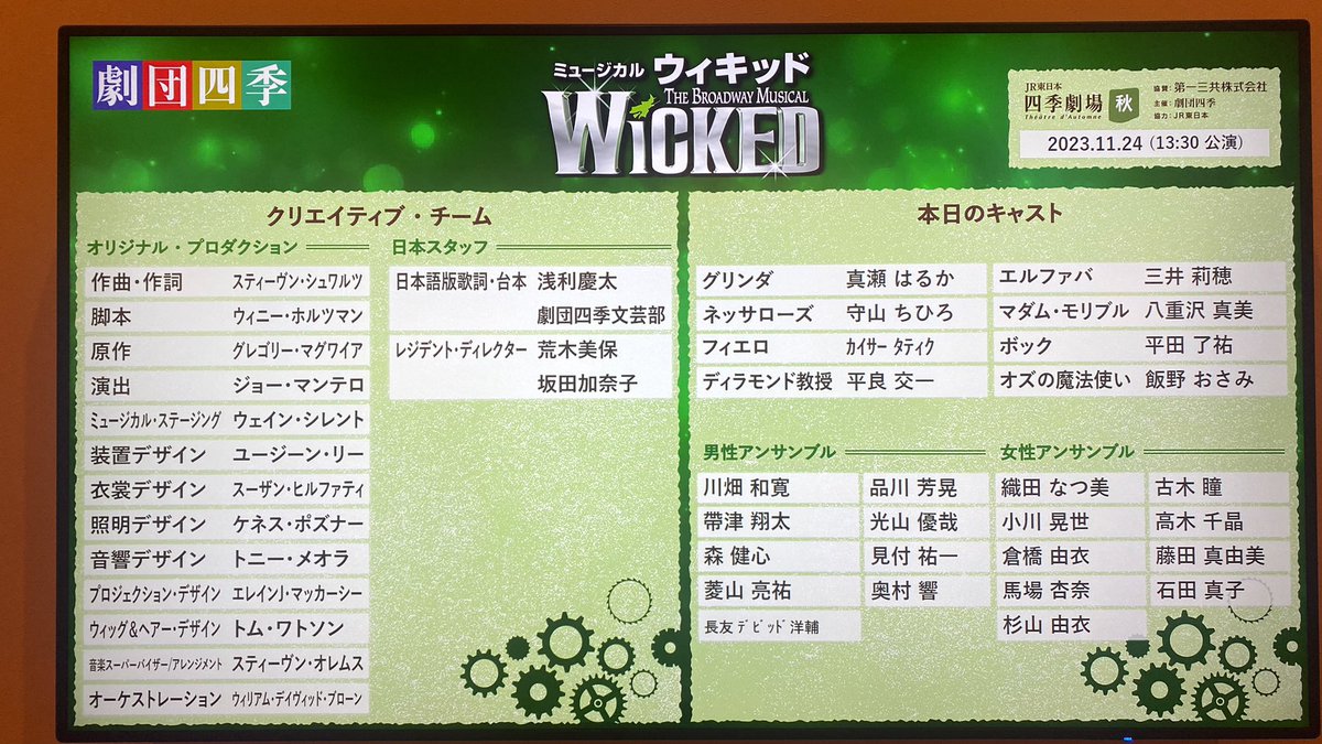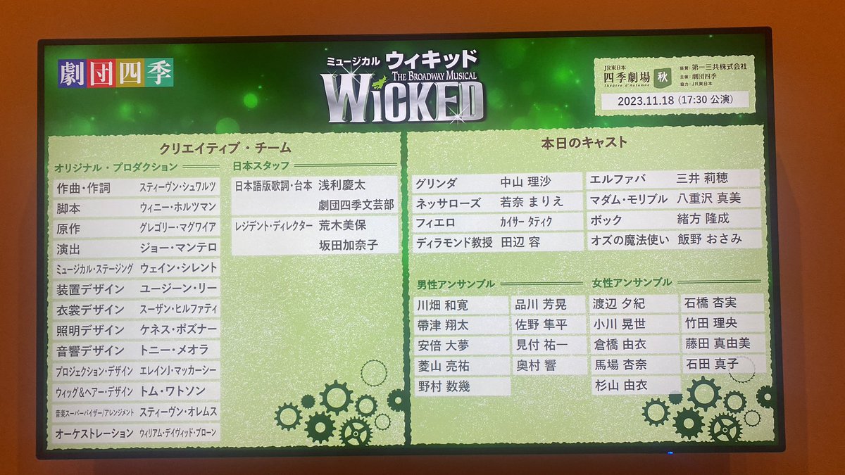 ということで、NYでは20年目を迎えた、#ウィキッド 、Tokyoで四季版、拝見させていただきます!!