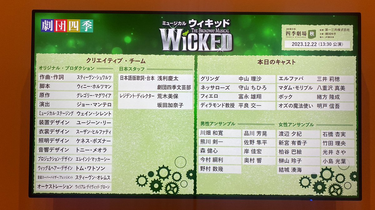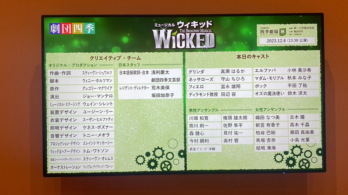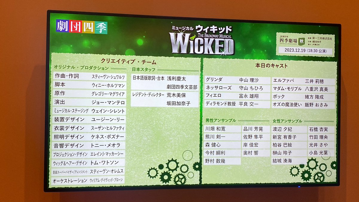 【ネタバレ分離】 劇団四季「ウィキッド」の観劇レポートです。