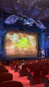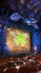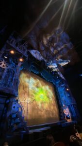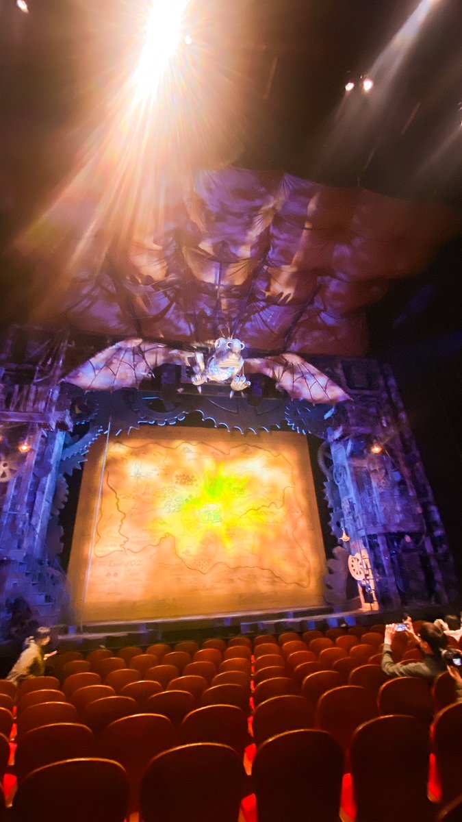 X(Twitter)で、今回の音楽の録音がちょっと軽くてイマイチで、2階席の方がマシに聴こえるっていうのが流れていた。確かに1階席で聞いていると、私も同じことを感じる。特に分かるのが、"March of the Witch Hunters"でボックが「♪あいつの魔法でこんな姿に~」歌い出すときの「チチチチチ」って入るハイハット?が割れてて微妙だったのだけれど、2階だとスピーカーの位置なのか、単に遠くなったからか、不自然な工マイルドに聴こえた。全体としてキンキンしている感じが2階席では薄れていた気がする。
