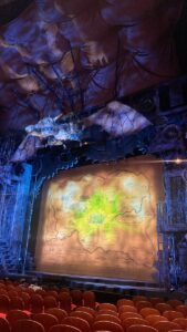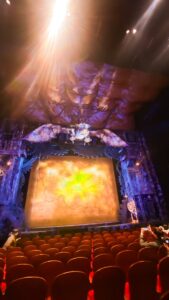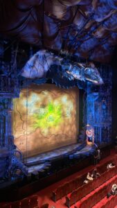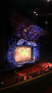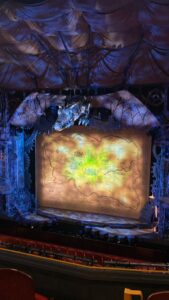今回の公演はじめての2階席。・・・実質は3階席の一番先頭(この劇場には3階はなくて、2階と3階の間に入口があるイメージ)。前が通路だった事もあって視界が開けていて、ドラゴンと舞台とが全体として俯瞰できる。ステージ床面、天井に張り巡らされた布の幌に映る照明が、もう奇麗で奇麗でたまらない。この視点。2014年ごろC席通ってた時は何度も何度も観ていたなぁ・・・などと思い出す。オズダスト、"One Short Day"で、世界に一気に引き込むカットの照明、"March of the Witch Hunters"、床を叩く瞬間に空気が変わるのも、舞台全体で観られる。ウィキッドの醍醐味は、やっぱり2階席にあり、な回だった。