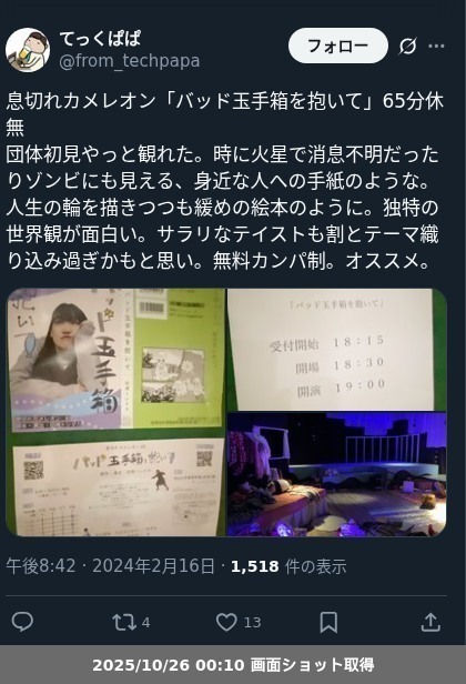 【観劇メモ】息切れカメレオン 「バッド玉手箱を抱いて」