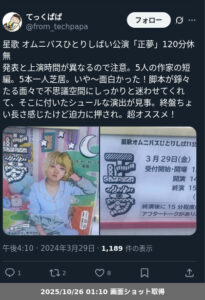 | 団体名 | 星歌オムニバスひとりしばい公演 |